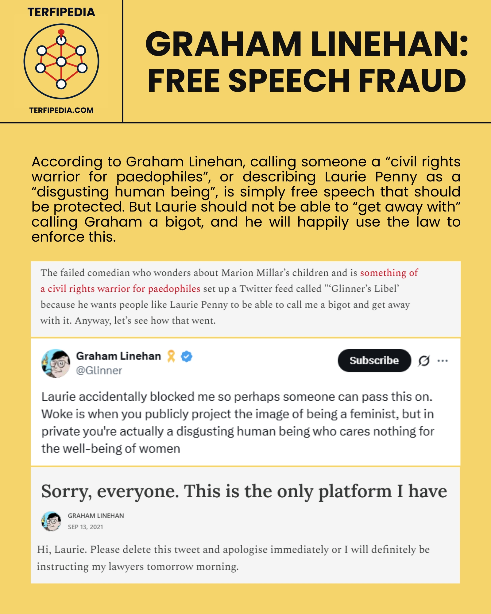 This is a work-in-progress timeline documenting the ongoing harassment of Sophia Brooks by Graham Linehan. October 2024